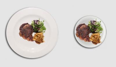 Aceeasi portie de mancare pare mica intr-o farfurie mare si potrivita sau mare intr-o farfurie mica.