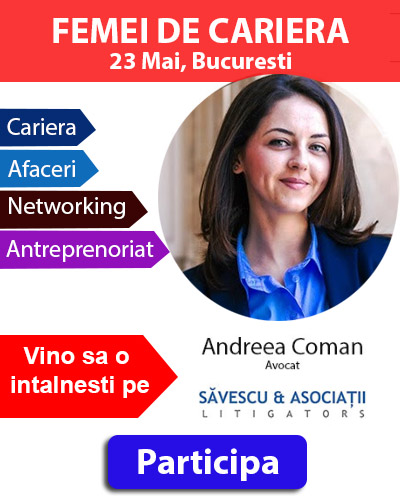Acestea sunt doar cateva definitii-reper care te pot convinge si pe tine sa participi la cea de-a X-a editie a Conferintei „Femei de Cariera”, unde va fi prezenta si Andreea Coman.