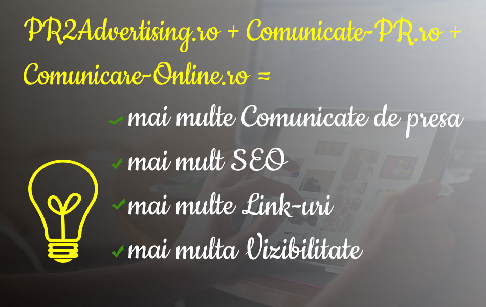 Testeaza pachetul pus la dispozitie de PR2Advertising.ro, pachet care iti permite publicarea unui numar nelimitat de articole si comunicate de presa cu link, la un pret extrem de bun. Vezi pachetul de postare comunicate pe trei site-uri.