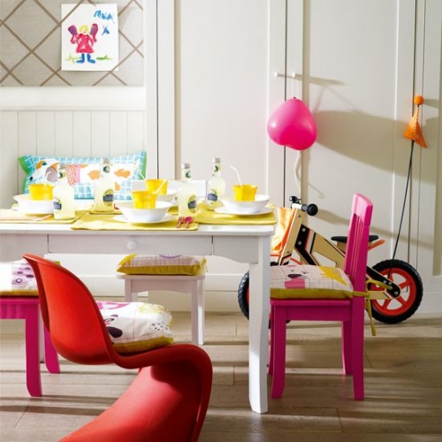 Dormitorul ca loc de joaca pentru copii ii va face pe micuti sa se simta oricand in elementul lor. Mobila pentru copii a fost mixata si potrivita in asa fel incat sa creeze un loc colorat si distractiv pentru joaca.