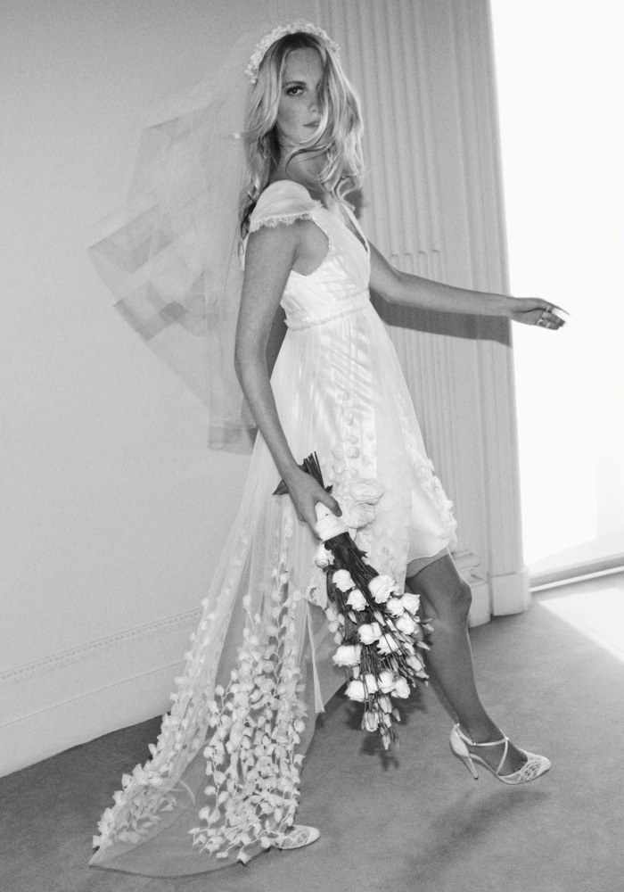 O alternativa care impleteste  clasicul cu modernul sunt rochiile scurte, completate de o trena lunga la spate, care aduc acea maiestuozitate, specifica rochiei de mireasa. Prin urmare, vrei sa fii feminina si sa te simti ca o printesa, dar sa nu fii incomodata de lungimea rochiei si de multitudinea fustelor, atunci rochia Alberta Ferretti, scurta, cu trena lunga, decorata cu flori este optiunea perfecta. Linia rochiei este curgatoare din materiale fine, precum matasea si tulle-ul, care sintetizeaza simplitatea si eleganta. (http://designerbridalroom.com.hk/mproduct/alberta-ferretti-13/)