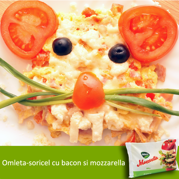 Omleta-soricel e una dintre mancarurile haioase, delicioase si satioase. Perfecta pentru micul dejun, omleta cu bacon si mozzarella Delaco te va inveseli de dimineata si iti va asigura energia pentru intreaga zi.