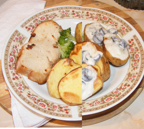 Pentru varianta „nedietetica”, poti opta pentru o garnitura de cartofi copti in coaja.