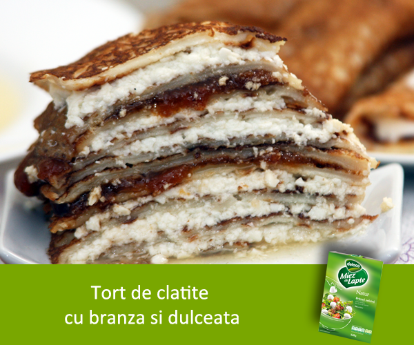 Tort de clatite cu branza si dulceata