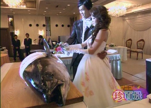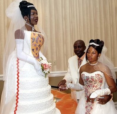 Una dintre cele mai bizare creatii din istoria torturilor de nunta este aceasta replica naturala a miresei. Ea a fost foarte incantata de reusita cofetarului, la fel si invitatii, pentru ca au mancat pe saturate. Partea care a intristat-o a fost obiceiul cu taierea tortului…